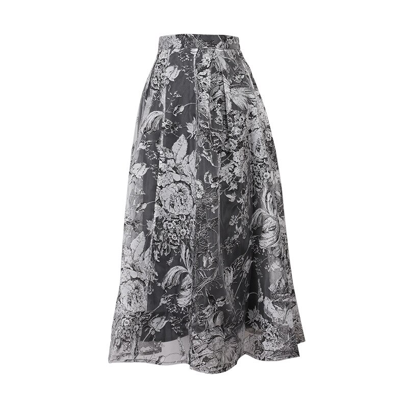 Organza black skirt autumn and winter 2022 new high-waist French A-line mid-length skirt