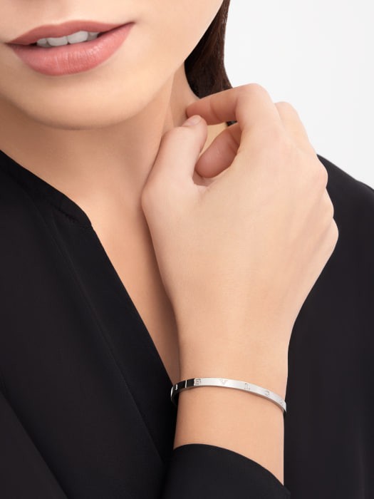 The B.ZERO1 series 18K rose gold bracelets are rooted in BULGARI's Roman history, presenting a timeless blend of culture and modernity, reflecting contemporary elegance. Inspired by the curved inscriptions on ancient Roman coins, the collection logo has been reinterpreted to create a unique and classic design element. This sleek and versatile bracelet can be mixed and stacked to your heart's content.